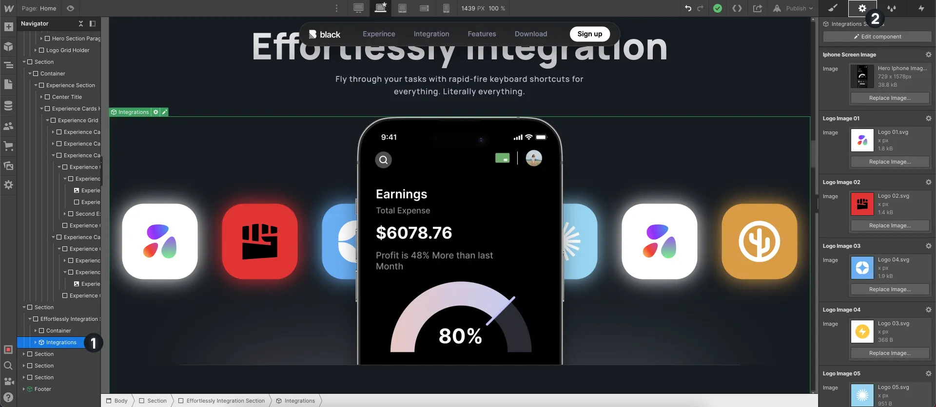 1. Navigate to "Integration" (1) Compontent