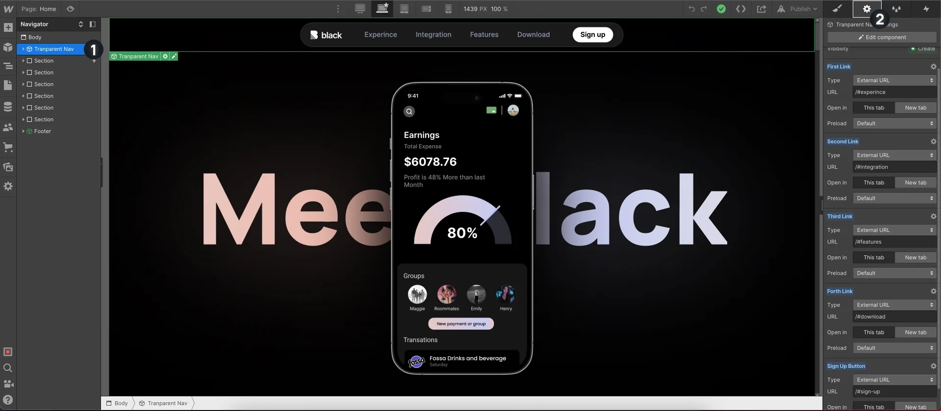 1. Navigate to "Transparet Nav" (1) Compontent